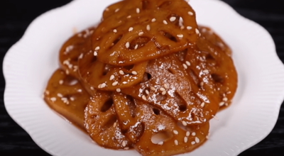 잘 졸인 상태가 되었으면 남은 재료인 나머지 물엿과 참기름을 투하하고 잘 뒤적여주고 마지막으로 꿀을 첨가하여서 잘 졸인 연근을 코팅해주고 그 위에 통깨를 슥 뿌리면 되겠습니다. 졸여주는 시간을 좀 더 투자하신다면 간도 더 잘 베이고 쫀득함을 살릴 수 있답니다.